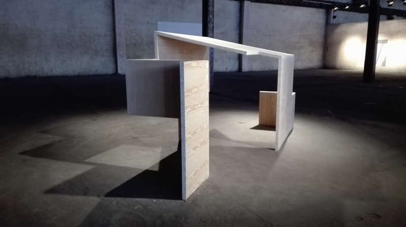 Il n’y a ici que des plans, des planches ou des tasseaux découpant le vide de murs absentés, qui se prolongent, se plient légèrement, se déplient et se déploient sans se référer à autre chose qu’à eux-mêmes. Ici le matériau prime sur la forme, le morceau sur l’idée du tout qu’il est normalement censé contribuer à faire apparaître. Ici, nous sommes face à des forces lentes qui sont littéralement sans raison, entendons sans but, sans finalité.