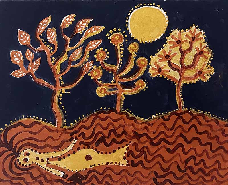 Que ce soient des figures de femmes endormies à six pieds sous terre ou bondissant rayonnantes à travers la galaxie, ou des triptyques se recomposant à partir de lettres, ou encore qu’elle nous présente d’étonnants assemblages d’algèbre et de poussière d’étoiles - les peintures de Catherine Belkhodja font co-exister l’énigme avec le sourire, le jeu de mots avec le calcul et l’aléa météorologique, et la solitude ultime des corps qui sont, en dépit de la protection des arbres, livrés à la présence d’une lune pâle – elles nous proposent une œuvre délicate, spirituelle et légèrement ironique.