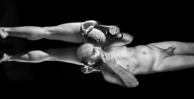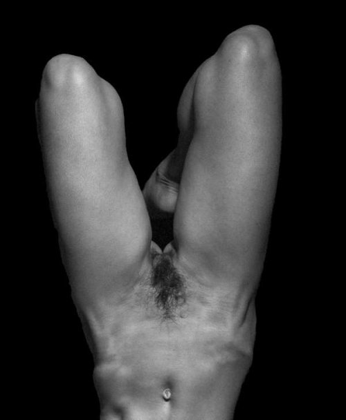 Il y a être allongé sur le dos ou le ventre ou plutôt les genoux. Que le dos soit alors couvert d’épines de métal accroît l’impression générale dont ces images sont porteuses : hors contexte un corps est à la fois et une île et un astre, un monde. C’est la lumière alors qui prime, en se focalisant sur une partie de la peau elle transforme le reste en contours flous et limites incertaines, en frontières absolues ne délimitant qu’elles-mêmes.