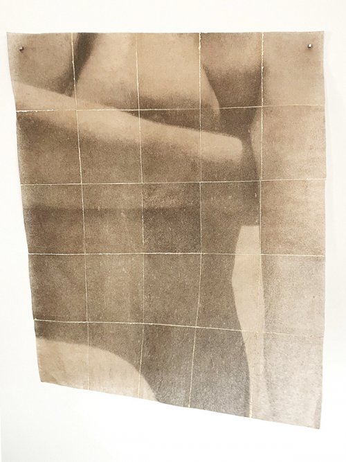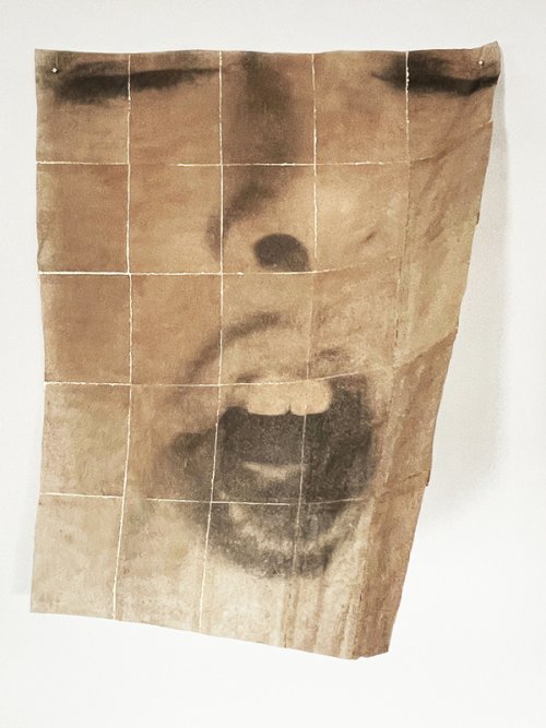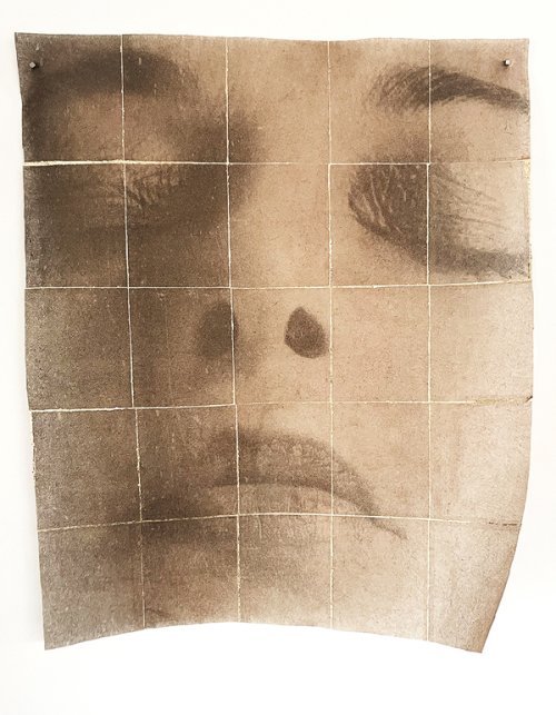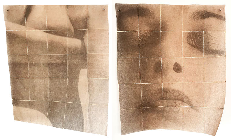 Le choix formel que j’ai mis au point y contribue. L’effet protection-révélation de l’application d’une feuille de thé infusée ainsi que la symbolique de l’or de la tradition japonaise du Kintsugi agissent comme une ré-appropriation de mon être entre le palpable et l’impalpable.