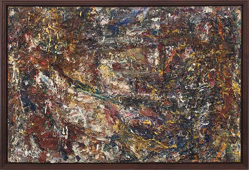C’est précisément la singularité de cet artiste d’enfouir les gestes et les signes premiers dans la chair texturée de la matière peinture. En poursuivant sa réalisation il ne cherche aucunement à expliciter la genèse de sa peinture. Ce n’est pas une peinture de taches mais plutôt de traces qui, en se heurtant, finissent par laisser deviner une vague évocation d’un paysage, de corps nus ou d’un autoportrait. Cela rassure le visiteur habitué à mettre des mots sur les images artistiques. Pourtant notre regard, et les pensées qui l’accompagnent risquent de se méprendre dans une formule langagière totalisatrice tout à fait à l’opposé des préoccupations de l’artiste.