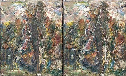Chez lui aussi les touches et leurs reprises permettent la traversée des formes par des structures latentes mises en réseau. Une des raisons des incertitudes dans l’exact repérage de ce maillage tient à ce que chaque touche propose un fléchage dans au moins deux directions en raison de l’obliquité de la touche et des lieux de l’entame et de l’arrêt. Chaque touche posée dessine une limite supérieure et une autre inférieure avec l’une comme l’autre des potentialités inductrices fortes. Toutes ces indications de facture se différencient tant visuellement qu’émotionnellement des formes dénotatives, arbre, nu ou autoportrait, que Eugène Leroy travaille aussi avec assiduité mais à sa manière. Les marques d’installation du réseau latent ne s’opposent pas aux formes identifiables. Elles dialoguent avec elles. Dans le même geste de dépôt les notations génératives sont à la fois indicatives de repères dans le réel et abstractives. À ce titre, elles revendiquent une autonomie.