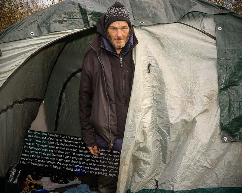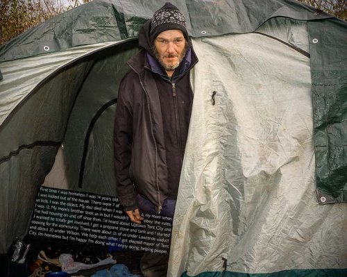 I got elected mayor of Tent City. I’m homeless but I’m happy. I’m doing what I enjoy doing : helping people.