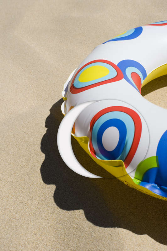 Bouée découpée d’un cercle qui est déjà, comme dessin, présent sur la bouée mais qui métaphoriquement vaut pour la bouée même, cette image comporte aussi une partie recollée. Elle met donc en scène le support comme objet et ainsi permet d’inverser la signification des termes « sujet » et « objet ». Face à cette image nous découvrons en fait le mécanisme perceptuel qui fonde le fait que nous ne fassions jamais face à la réalité.