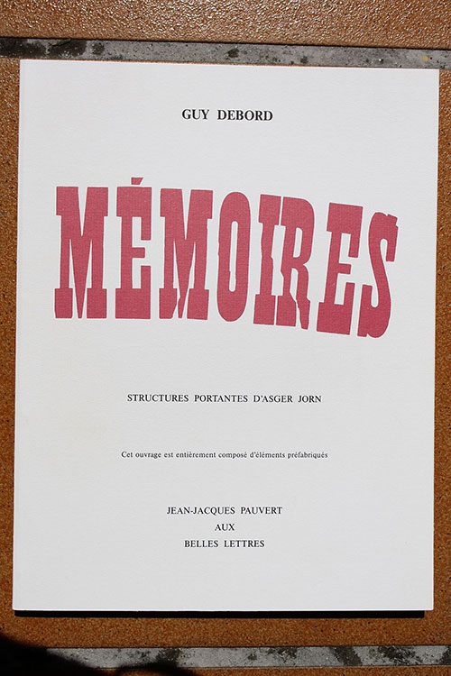 Il écrit et publie à la même époque son ouvrage intitulé Mémoires composé de phrases et de lambeaux de phrases prises dans le corpus général de sa bibliothèque incluant toutes sortes de livres, manuels scolaires ou livres techniques et installés en vagues désordonnées sur les structures portantes, des éclats et des coulures de couleurs réalisés par son ami qui sera aussi le producteur de certains de ses films, le grand peintre et écrivain danois Asger Jorn.