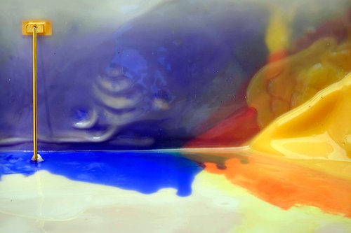 Cette exposition donne à voir les sujets et les techniques qui composent le travail de l’artiste. Nous retrouvons la matière, le polyvinyle, à l’origine de sa pratique de plasticien, devenue sa marque de fabrique. La lividité organique produite par la résine devient alors une obsession, autant que la plastification du temps. Les tableaux apparaissent alors comme des synesthésies où les sons et la matière deviennent image. Les couleurs, les formes et les textures, liées par la résine, viennent composer un paysage dans lequel nous nous perdons, un voyage dans un monde coloré et silencieux.
