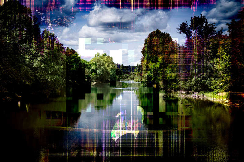 près d’une rivière souple et verte