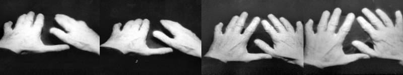 Je propose donc treize photogrammes obtenus par saisie d’image numérique sur ordinateur à partir du DVD et montée ensuite dans une application de traitement d’image, qui dans la mesure du possible tentent par l’image fixe ainsi obtenue de refléter les analyses de ces deux auteurs.