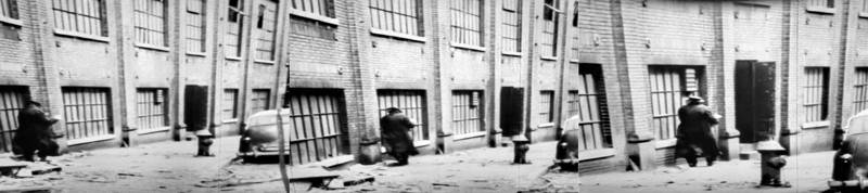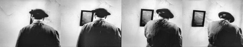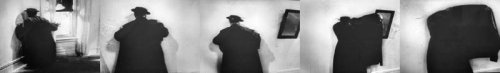 Buster Keaton en vieil homme apeuré est poursuivi par l’ombre de lui-même. Une création photographique d’après « Film », de Samuel Beckett et Alan Schneider, avec Buster Keaton dans sa dernière apparition en 1965.