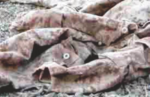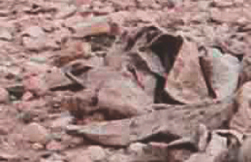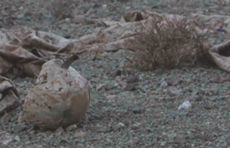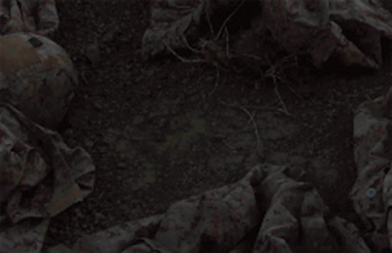 Mais le doute s’installe progressivement : en guise de dépouilles ce sont là des uniformes militaires qui jonchent le sol. Réalisée dans le désert marocain, cette série, « la première sans figure humaine » précise Cogitore, met en scène une nouvelle technique de camouflage appelée « digital desert » qui permet d’échapper non plus à l’ennemi de tranchées mais à l’œil invisible des drone.