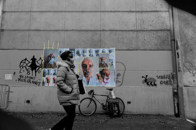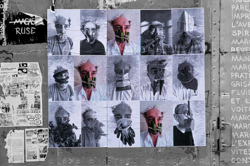Depuis le 5 novembre les FrenchMasks.SGDG sont montrés dans l’exposition du Mois de la Photo de Grenoble, in situ, hors les murs et dans l’Ancien Musée de Peinture. Ils sont collés sur les murs de la ville. Quelques-unes de ces photographies resteront visibles, protégées de différentes manières, en pleine liberté, jusqu’au 5 décembre, date de clôture de l’évènement et peut-être au-delà si les incantations auront été suffisamment fortes.