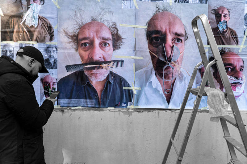 Ces actions en extérieur, dans l’espace public, ont reçu très souvent les réactions des passants, habitants du quartier, dans un large spectre de commentaires. Ces interactions portaient autant sur le fond, le sujet montré, que sur la forme, l’affichage public. Parfois aussi, l’indifférence à l’action laissait le travail se faire dans le silence ambiant des passages et des activités ordinaires de la ville. Les quelques fois où la sensation d’agression de l’œuvre m’était exprimée, par l’occupation d’un espace détournée de sa fonction réglementaire ou par la peur d’un affichage politique extrémiste et provocateur, les brèves discussions et explications, se sont toujours soldées par des approbations et des remerciements, des rires et de la symphaties, partagés. Les plus beaux étaient l’enthousiasme et les railleries des enfants devant les portraits de ce personnage adulte, effectivement ridicule, à la calvitie joyeuse, décomplexé de ses défauts. Mais aussi celui qui avait confondu cet homme avec l’autre star médiatique tellement écouté depuis des mois, le méchant dangereux.