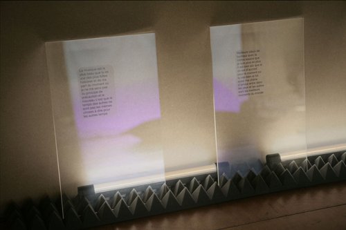 L’investissement émotionnel des utilisateurs dans le réseau, constitué de singularités certes isolées mais néanmoins englobées dans une entité qui les transcende, se retrouve dans I quit. Face (web-) caméra, des individus ayant décidé de se retirer des réseaux sociaux en témoignent une ultime fois - via ces mêmes réseaux. La même charge émotionnelle, cette fois tirée vers son versant inconscient, se retrouve dans Oracles. Via la fonction de suggestion du logiciel de messagerie d’Apple, une série de textes sont générés de manière semi-automatique, puis imprimés sur plaques de verre. L’idiosyncrasie de l’utilisateur se mêle aux suggestions des tournures les plus communes, illustrant ainsi toute la palette des émotions standardisées 2.0. Pour prolonger l’enquête matériologique de François Dagognet, il faudrait ici traiter ce vivant en tant que vivant augmenté ; et ces interfaces connectées, comme des lieux à part entière. Comme une membrane, l’interface assure les échanges entre les deux milieux qu’elle sépare – ici, le monde des humains et de l’intelligence dite artificielle. A fleur de peau, de la conjonction de l’un et l’autre milieu, naît alors un nouveau registre de désirs : l’humain et son extension machinique se mettent à partager le même pouls, les mêmes rêves, les mêmes mots.