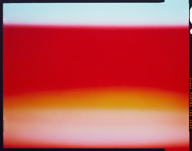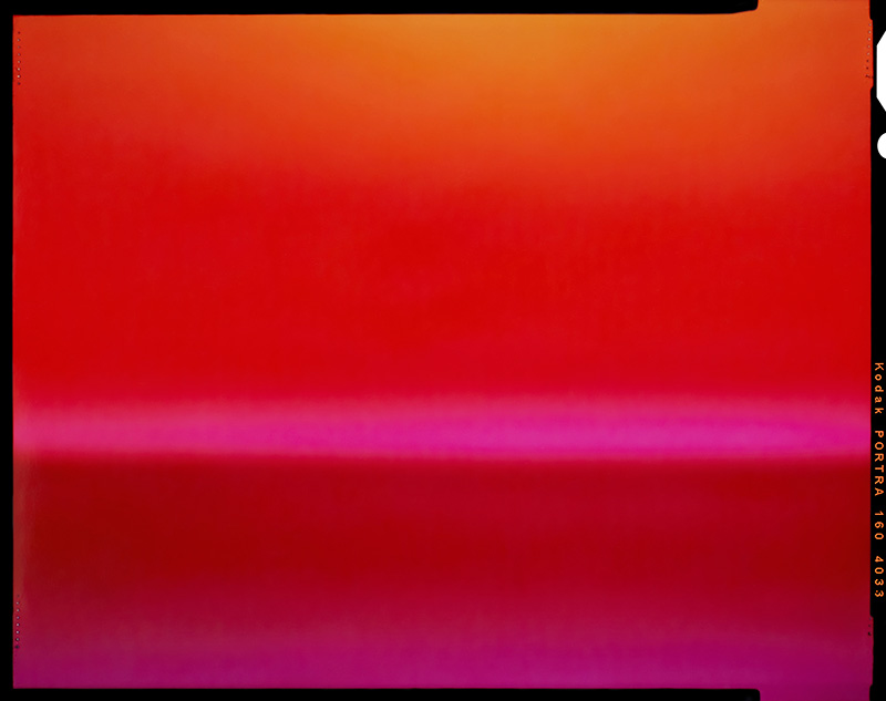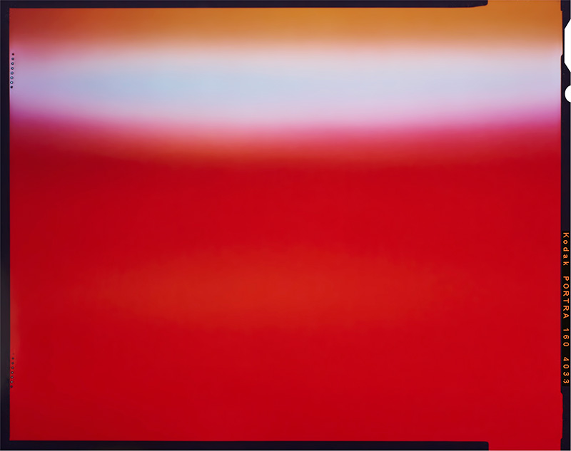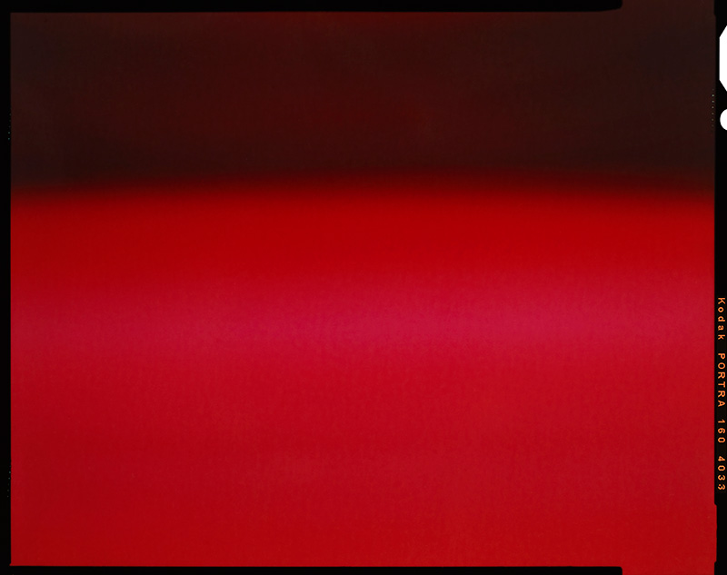 La prise de vue est ici l’acte final qui vient fixer sur un support argentique mes compositions et jeux de couleurs. La volonté de laisser apparente les traces de pinces dans l’émulsion au moment du développement et le filet noir au moment du tirage témoigne de ce procédé photographique traditionnel.