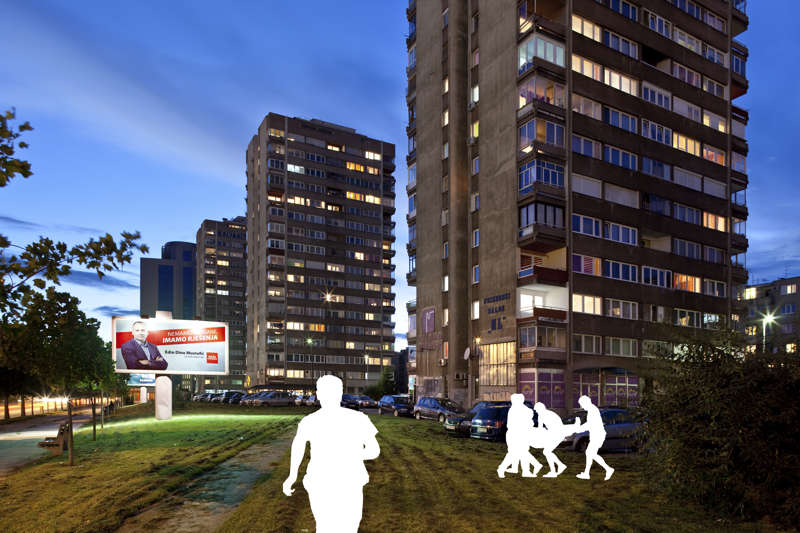 En contrechamp de ce paysage vécu, les lieux de pouvoir dessinent une architecture symbolique de l’absence, encore peu appropriée par la population. L’effort consacré à la (re)construction des centres politiques, économiques ou religieux délègue désormais à un patrimoine sans valeur apparente – les grands ensembles hérités de la Yougoslavie de Tito, les rues et les trottoirs où se fossilisent les impacts d’obus – le rôle de monument commémoratif. Malgré la paralysie de son économie et l’indigence du système politique mis en place à la fin de la guerre, Sarajevo veille à l’aube de nuits enceintes dont nul, dit le proverbe turc, ne connaît le jour qui naîtra.