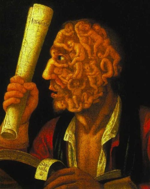 « L’origine de la vision allégorique est dans le conflit entre la physis accablée de péché, instituée par le christianisme, et une natura deorum plus pure, incarnée par le panthéon. » (Walter Benjamin, op. cit., p. 311)