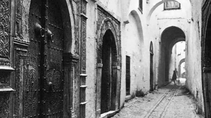 Si j’évoque Tunis après toutes ces années, la cité des arbres sur les avenues larges des Européens et les senteurs du jasmin, celle demeurée aussi dans des boîtes de photographies retrouvées de 1958, celle des récits et des mythes dans lesquels immanquablement nous vivons, où tout mon être d’enfant vivifié se levait et passait, celle d’Ulysse et d’Ithaque, celle des héros et de Troie, des savants, de l’archéologue allemand Schliemann, de Pepino Canun aussi, le bandit sicilien dont mon grand-père inventait les récits, celle de la Casbah large et toujours gardée de soldats en uniforme et en armes, de la Médina dédalique aux portes comme de petits arcs de pierre et aux ruelles humides et sombres donnant parfois sur les couleurs, les échoppes, les entrailles des infinies galeries et des souks, du tapis de velours avec le dessin des bandits s’enfuyant dans la nuit immobile des étoiles alignées, celle des terreurs et des formes dressées un instant apaisées, des regards, des odeurs, des voix et des sons qui fusaient près de la mer et du port, avec au loin la courbe rosée du train – le « TGM » reliant Tunis à La Marsa – glissant sur la lagune et les flots dans un long, un éternel et beau sourire des statues et des formes, je vois que c’est Tunis aussi et mon regard qui se brouillent en dépit de tous mes efforts. Et malgré la manière d’éveil aujourd’hui, après toutes ces années, de documents parcourus, de cartes, de connaissances diverses et de photographies, de réflexions sans cesse reprises et de souvenirs éprouvés. Cependant dans cette étrange cécité supérieure et belle, obligée, mêlée et advenue de mes sens, de la mémoire, de recherches sans fin et du réel brouillé, Tunis m’apparaît encore comme la cité des images de l’aurore.