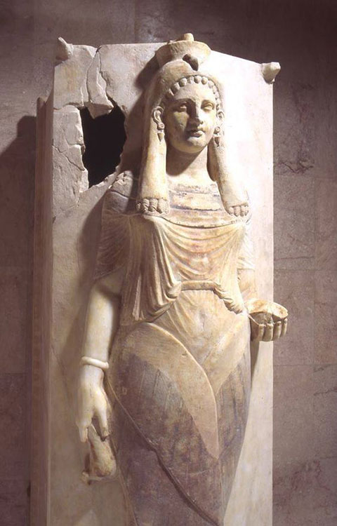 La femme de marbre blanc (dite « La prêtresse ») plus que tout me charmait. La belle peau scintillante de pierre lustrée de son corps émergeait des surplis du vêtement sculpté. Les reflets de ses bras nus avaient pour moi la nacre et la fine buée de porcelaine dilatée des seins nus et offerts de la déesse aux serpents. Tout entière étendue, la prêtresse de marbre avait un visage serein, fixe sous la sorte de diadème en forme de temple et de colonne de sa coiffe de marbre, et je me trouvais tout-à-coup dans une Grèce tant aimée et magique. C’était une sorte de personne et de statue mêlée, une forme de pierre venue d’Ithaque et d’un monde d’Ulysse cependant qu’elle demeurait, statue unique régnante sur le musée et les antiquités, une réelle prêtresse des lieux, du musée et de la colline de Byrsa. Dans sa coiffe on me faisait remarquer, plutôt qu’elle ne m’apparaissait, l’étrangeté de la petite tête sculptée d’un faucon.
