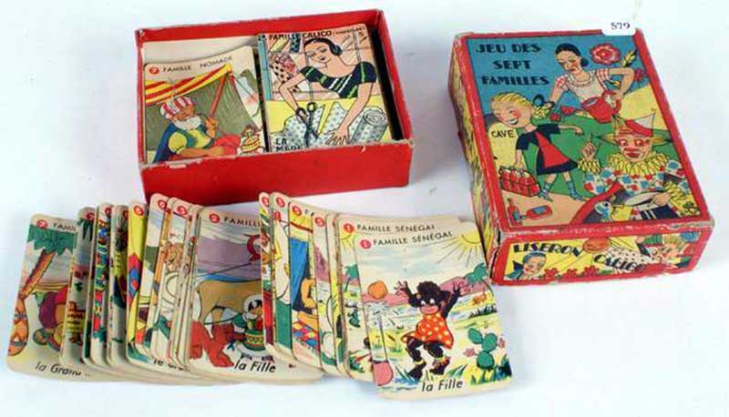 Quelquefois sur le sol ou le lit j’étalais les cartes, les posant l’une contre l’autre, examinais longtemps les personnages dessinés de chacune des familles, deux enfants, deux parents, deux grands-parents. Un monde d’atlas condensé et de pays lointains s’assemblait, à la manière de cellule aussi de toutes les familles, faciles à identifier, signes enfantins d’une Chine d’alors, de l’Inde des Maharajas, de l’Afrique noire, de l’Amérique des Peaux-rouges ou d’un pays des Esquimaux. Et les familles et les pays se déployaient en une suite d’images, de costumes, de visages, de gestes, de sourires et de décors différents.