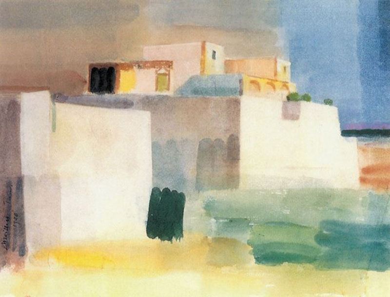 Je passais dans cette écharpe bleue, avec l’impression de suivre un point fixe devant, cachant dans la suprématie mécanique et continue de marcher, le mystère et l’absence de raison, de point où se rendre, d’axe réel où se tenir sur la terre sous le regard des trois jeunes filles. L’une d’entre elles était une cousine, réfugiée de la cité de Bizerte tout au nord du golfe de Tunis sur la mer, et d’où nous venaient les échos récents d’événements militaires.