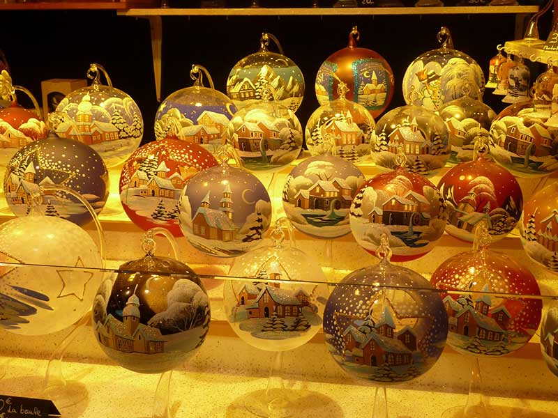 Les boîtes de carton contenaient les boules de Noël, une longue guirlande aux multiples ampoules de couleurs, et tous les personnages de la crèche extraits de leur écrin de paille. Un fort papier marron, moucheté de taches de vert sombre, formait la niche d’une petite grotte que mon père posait sur un guéridon de bois ciré. Et il fixait derrière, comme un vaste décor qui fût celui d’un immuable Noël, de grandes images sur un carton rigide, scènes lisses et en couleurs de sapins enneigés d’Autriche, des Alpes, maintenues contre le bas du mur derrière la crèche par quelques poids invisibles et perdus entre les petits personnages alignés. Il semblait alors que la masse verte et que les silhouettes de papier glacé des sapins, parfois un vallon enneigé, faisaient un monde vaste qui veillait sur la grotte, ajoutaient à la belle étrangeté de Noël sur le bois sombre du petit guéridon, tandis qu’au loin dans le soir le vent et les flots battaient dehors sur la baie de Carthage.