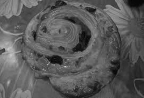 Cependant son visage encore renvoyait à l’abeille et à la troublante expression de sa taille de guêpe, et c’était un bandeau large et jaune, élastique, ajusté sur son front pour tenir ses longs cheveux châtains et clairs. Et tout se dorait alors d’une sensation de miel blond, de lumière et de nourriture, ainsi que les pâtisseries convoitées à Tunis aux glaciers de la grande avenue, croissants oranais aux abricots parfois, ombilics feuilletés et sucrés se défaisant en lambeaux déroulés ainsi que des tresses dorées, en des lamelles fines, croustillantes, et que je retrouverais en France, en Dordogne et dans le sud-ouest, sous le nom de schneck et de pain aux raisins.
