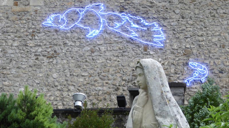 En particulier quand elles parlent de restauration et de réparation, c’est-à-dire le fait de soigner une situation abîmée par une action de remise en état. C’est ce que nous disent en particulier Victoria Klotz à Figeac ou Art Orienté Objet à Lourdes avec leurs œuvres dédiées au monde animal et à la biodiversité. Leurs figures de l’ours blanc, du chameau post-humain ou de l’aigle de lumière nous renvoient aussi à une urgence écologique et climatique.