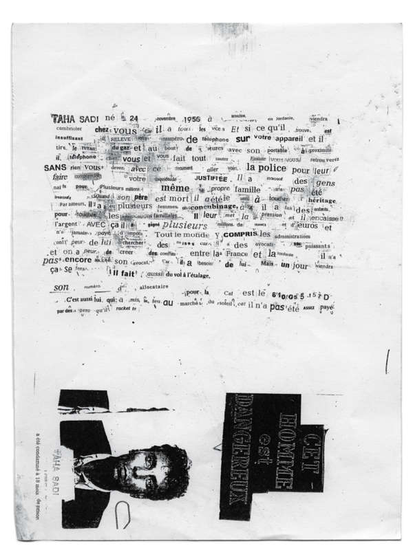 Dans les faits, on a entre les mains des hautes pages en noir et blanc, des images pleine page et des textes déployés en questions à tendance irrecevable ou fragmentés jusqu’à l’énigme. Et d’images en mots, de mots en phrases, aveux ou questions se mettent à voyager, satellites incertains, heurtant-ci, déchirant-là, le mur des évidences et du sens commun.