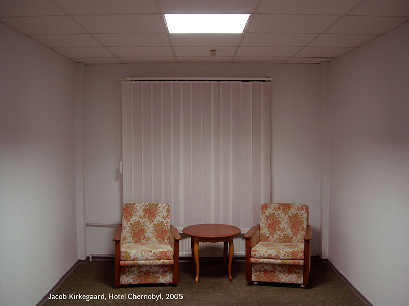 Nous observons un état de décomposition d’un monde à l’abandon. Des intérieurs décrépis, moisis, vides de soin, dans la « zone », Prypiat n’a pas été décontaminée, elle put être pillée d’objets et éléments contaminés eux aussi ainsi déplacés, ville fantôme aujourd’hui ouverte à un tourisme sélectif : le tourisme apocalyptique.