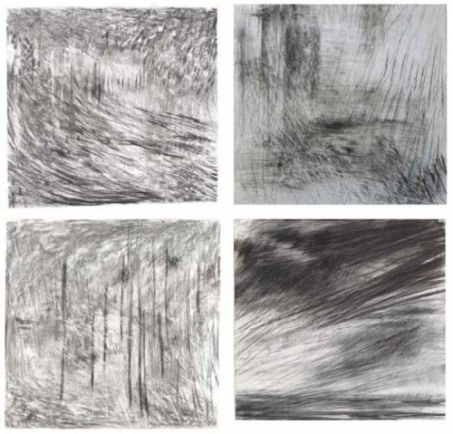 Quant à Géraldine Trubert, c’est au vent qu’elle se voue. Elle lui confère nuance et grammaire. Ainsi il se défait de son invisibilité, sort de son existence potentielle typée par le chaos. C’est un peu une radiographie-mobile pour effets atmosphériques que Géraldine Trubert tient en son fusain. Avant elle il y avait l’invisible, après elle toujours l’invisible. Au centre, et donc à l’œuvre, un épanchement visible et visuel. Un dépassement de la matière par l’artiste même.