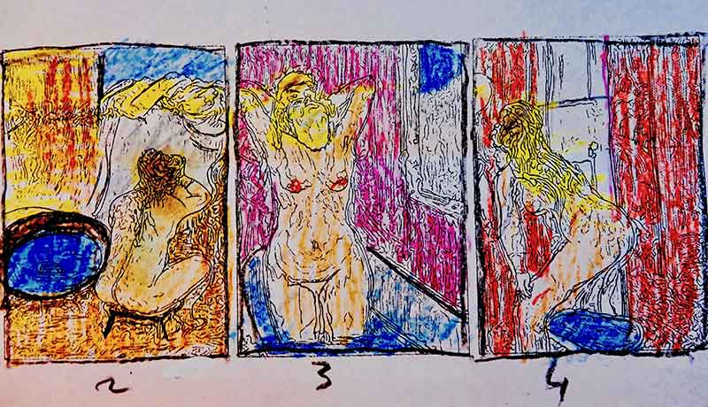 Jacques Cauda a lu Jacques Henric et Philippe Sollers (qui, eux-mêmes, ne le semblent pas vouloir lire — mais ceci est une autre histoire, celle de la stérilité de notre temps sans pères — celui où nous tournons dans la nuit et sommes pris dans la glace de la stérilité considérée comme un des beaux-arts) : « Les femmes sont les rouages du voir. » Le « ça-voir » est à l’origine de tout sa-voir/savoir. Il faut accepter de regarder/voir, même l’horrible, pour accéder au gai savoir visuel/text(sex)uel : « Je la [Geneviève — un modèle du peintre] réveille en fanfare. Avec une fourchette plantée artistiquement dans l’œil opposé au pied coupé [précédemment, pour une étude anatomique]. Ça fait une jolie diagonale, une ligne de fuite à suivre. » Ce passage justifierait-il à lui tout seul l’existence de la nouvelle collection que dirige Philippe Thireau chez Z4 éditions, « La diagonale de l’écrivain » ? La perspective comme péché originel de la peinture occidentale ? Allez savoir…