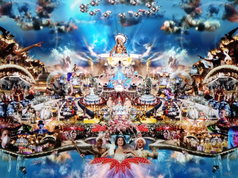 L’exposition Je est un autre ? regroupant les œuvres d’une vingtaine d’artistes se situe essentiellement au sein des ateliers qui entourent la halle Aubervilliers accueillant elle aussi quelques créations. L’installation vidéo Heaven’s Gate de Marco Brambilla, ayant les allures d’un retable, est un hommage au cinéma hollywoodien. Où lentement défile devant nos yeux une image évoquant l’esthétique dominante de l’excès qui est celle de l’internet. La composition est résolument symétrique, comme c’est la règle en peinture lorsqu’il s’agit de retables. Ce qui a pour effet de renvoyer systématiquement notre regard vers le centre du cadre, la place ordinairement réservée aux stars. Là où l’on reconnait les rôles si bien incarnés qui ont ponctué nos vies de cinéphiles. Sans omettre la musique qui participe grandement de l’envoûtement dans lequel l’œuvre nous place. Chacune, chacun y verra sa version du ballet des fragments de sa propre vie.