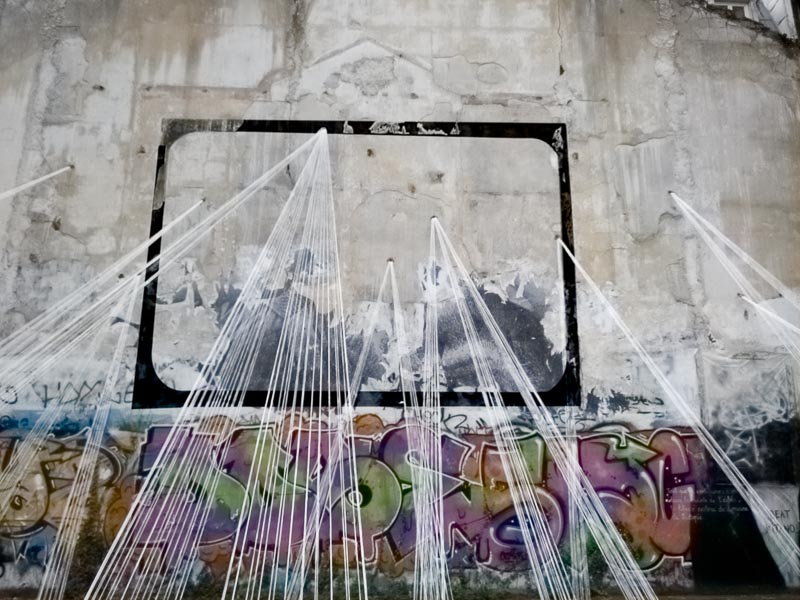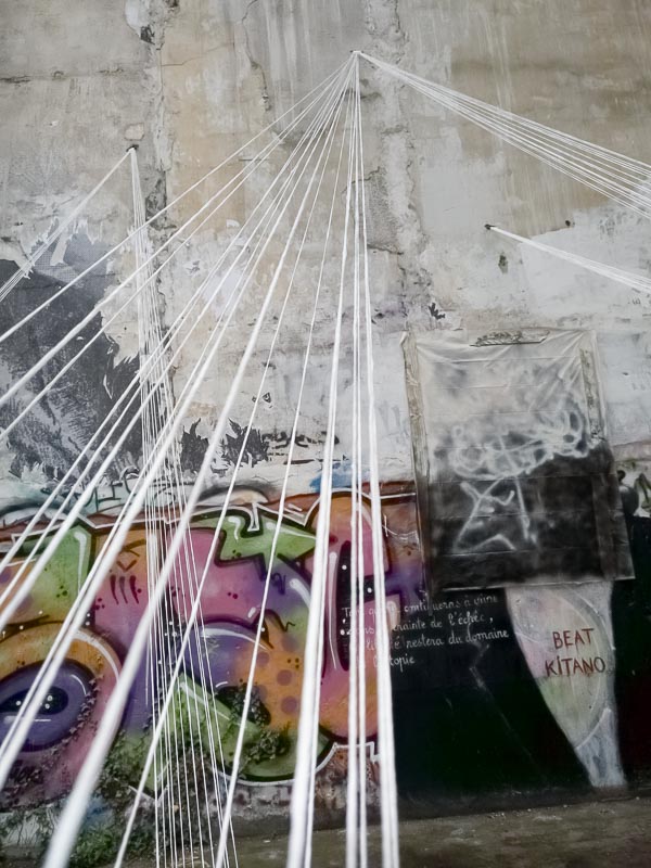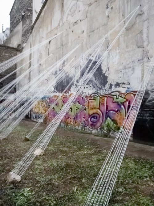 Une installation de fils blancs dans une friche de Montmartre.
