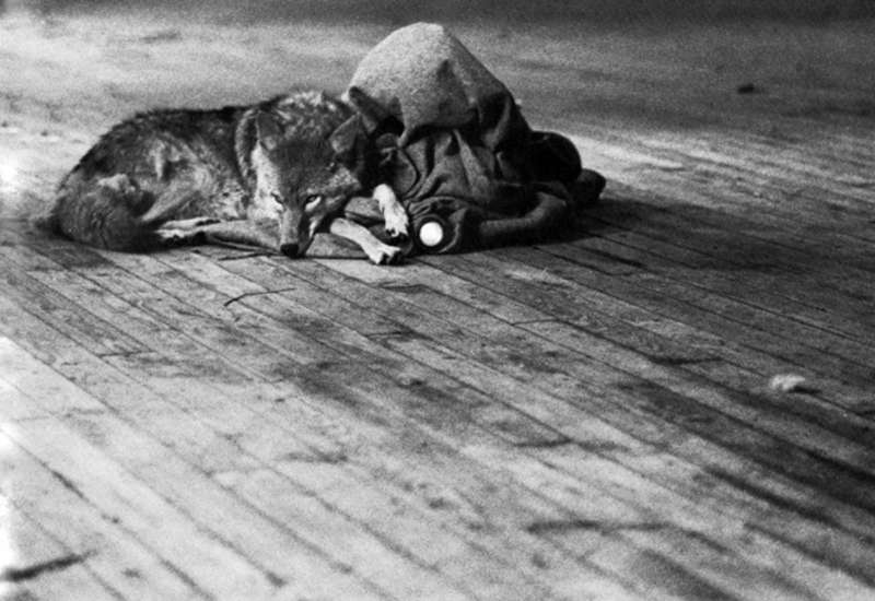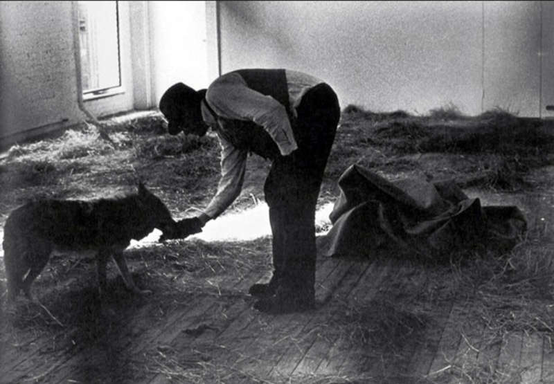 Pour l’ouverture à Manhattan d’une dépendance de la Galerie René Block de Berlin, Jospeh Beuys s’était rendu à New-York pour s’enfermer pendant trois jours dans une salle de la galerie, transformée en cage, avec un coyote nommé « Little John ».