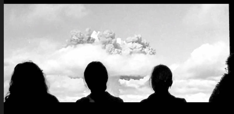 image d’ouverture : photogramme de la vidéo d’ Alain Wagner : projection du film « Crossroads »*, de Bruce Conner (1976), exposition L’Âge atomique, MAM Paris.