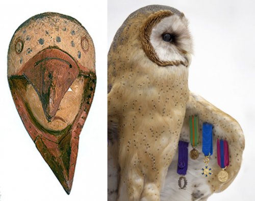 2013, Chouette effraie naturalisée, médailles, 30x25x37cm