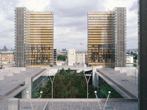 – Vide au milieu comme chez Dominique Perrault (Bibliothèque François Mitterrand, Paris). Le vide se fait silence. Ce vide peut aussi défaire les façades rigides (Auguste Perret, rue Franklin, Paris, mais aussi François Borel ou, chez Adolf Loos, la façade de la villa Tzara à Montmartre) ;