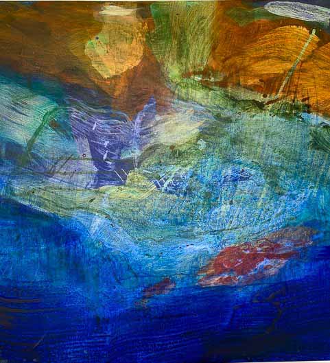 Puis le moment venu, je tente de transposer ces ressentis au travers d’une écriture picturale gestuelle, spontanée, dans l’énergie de l’instant, sans repentir. L’engagement est là, total.