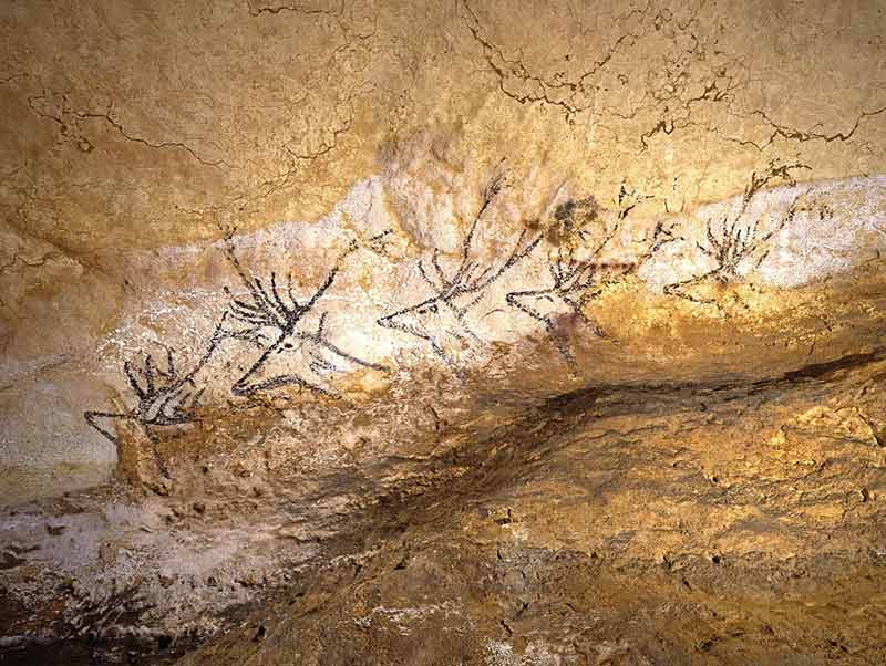 Des formes s’agrègent, émergent, des taches de couleur, des ocres, des rouges, des bruns, des jaunes se déploient en des formes vivantes dans l’épaisseur neigeuse de la calcite blanche. La vie laissée sous la terre danse ! et elle tournoie dans les poudres de couleurs posées sur le plafond et dans les murs de la grotte. Et les poudres animent des bisons ! des chevaux, des cerfs ! au-dessus de moi depuis des millénaires. C’est une ronde vivante, un rêve fou, hagard, halluciné, que ces images vives, ces animaux animés et vivants, gravés pour personne et pour rien dans cette danse de la terre ! immenses dans le ciel de la grotte, leurs formes, leurs images flottent dans ma tête, se meuvent sur les parois de la grotte, et je comprends, je sais, je suis descendu à l’intérieur d’un crâne.