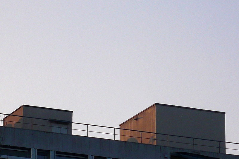 Depuis cette terrasse on peut observer la mer mais aussi les toitures des immeubles les plus proches. Sur l’une d’elle se trouve un édicule dont les parois sont entièrement vitrées.