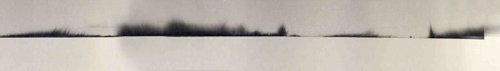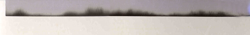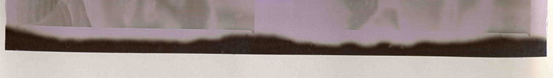 J’ai découvert dans l’habitacle de la deuxième terrasse un modeste mobilier : une chaise, une table et quelques objets abandonnés, dont un coffret métallique contenant un petit carnet et des images photographiques sous forme de fragments de négatifs (en fort mauvais état) : il s’agit de lointains, posés sur des lignes d’horizon ressemblant aux silhouettes des paysages côtiers, dessinés autrefois par les explorateurs cartographes.