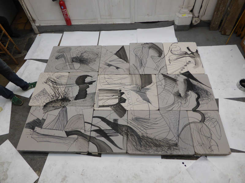 En effet, il semble que le processus de création ait consisté à jeter des esquisses de l’œuvre globale sur le papier et à faire des dessins qui soient, eux des parties possibles de cette totalité mais à une échelle telle que les éléments prenaient une place et une force qui mettaient en danger l’unité prévue. C’est ce balancement entre totalité impossible et éléments discrets mais non intégrables dans l’unité originellement prévue qui a constitué le « moteur » de cette création.