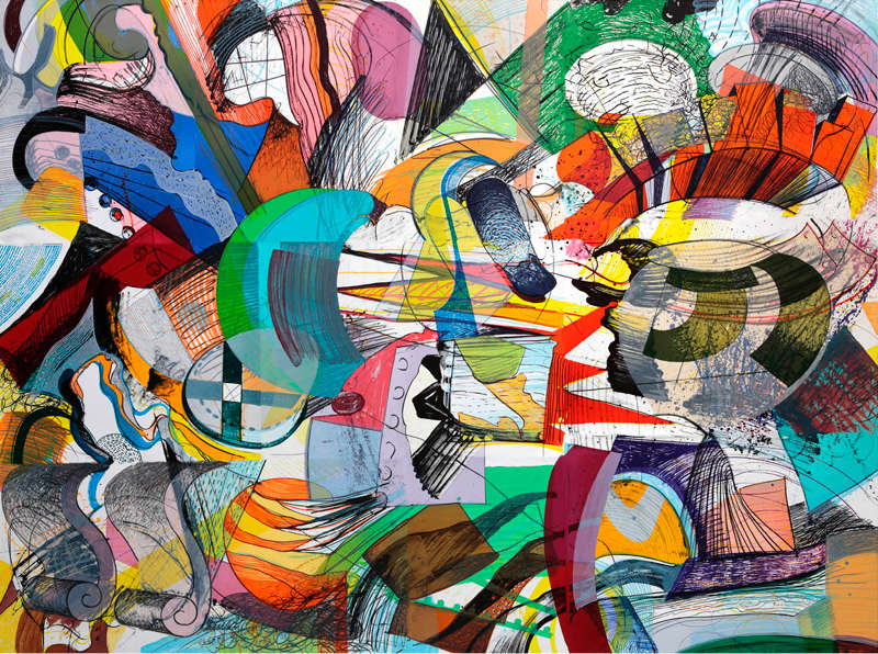 Il n’en reste pas moins qu’il y a bien quelque chose à voir sur cette plus grande lithographie du monde. Ce qu’elle offre au regard est bien une sorte de chaos, mais un chaos porté par un rythme si puissant que quelque chose se passe qui est sensible immédiatement. L’œuvre, ici, s’élève à la hauteur de l’événement, en ce qu’elle s’impose comme vision, se déploie comme « monde » et s’adresse à nous comme élément nouveau de notre monde.