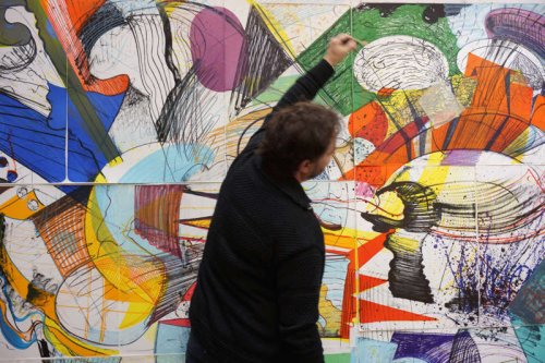 Ses peintures souvent grandes, voire immenses, mettent en scène des mouvements et des rythmes abstraits portés par les structures en parties déconstruites des éléments concrets que les dessins font exister.