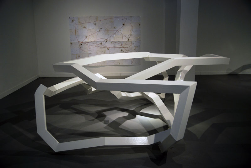 C’est à la transcription et à la mise en œuvre plastique de cette expérience radicale qu’il va s’employer alors, porté par la double découverte, pas de possibilités que lui offre le nouveau matériau d’une part et d’autre part cette vision d’un espace ne répondant plus aux normes classiques de détermination de l’espace.