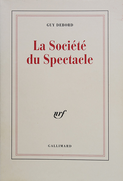 Pour ce faire, nous nous appuierons aujourd’hui essentiellement sur trois textes de Guy Debord, La société du spectacle, In girum... et les Commentaires sur la société du spectacle, un texte de 67, un autre de 77 et le dernier de 88.