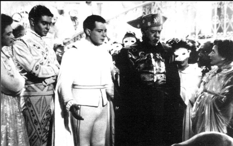 Et c’est alors que tout le film prend tout son sel/sens : par un tour d’écrou de la fiction, les acteurs se mettent à se prendre à leurs propres jeux, devenant les victimes d’amours simulées : la vie vient au théâtre/cinéma ; on ne peut plus vraiment distinguer le vrai du faux : qui aime qui ? Tout n’est plus qu’illusion. Illusion du bonheur apportant quand même le bonheur. Comme dans l’opus cité de Rondepierre, « le mime » (on joue à être amoureux) devient « l’essence » du théâtre/cinéma qui, eux, sont « l’accident du mime » : par retour de fiction, les amours vont se retourner de façon imprévisible — sera pris qui croyait prendre… Bien sûr, l’éternel mur qui cachait le soleil dans la pension Beausoleil va tomber sous un coup de Mistral un peu plus fort que d’habitude : c’est le fameux quatrième mur de la scène qui se brise alors ! Plus de lumière ! Cinématographe. Plus rien n’est vrai… tout est permis ! Pour Evreïnoff, « le théâtre est un instinct qui transfigure la vie quotidienne » ; pour L’Herbier, le cinéma et la radio sont des machines qui transfigurent la vie théâtrale : la radiodiffusion [2] de la grande séquence finale, toute renoirienne et Commedia dell’arte (des acteurs ont envahi tout l’espace de la scène/l’écran pour un bal masqué de mi-Carême ; on se croirait dans la fin de La Règle du jeu ou du Carrosse d’or — The world is a stage en effet), fera même sortir de chez lui un vieil auditeur-spectateur voulant s’assurer au siège de Radio Azur (à l’architecture très Art déco — un souvenir de L’Inhumaine ?) qu’on est bien en train de jouer « une comédie » ; ce à quoi le directeur de la radio lui opposera : « Mais vous-même, n’êtes-vous pas aussi un acteur ? » Quoi ? La vie n’est qu’un songe ? Clap de fin sur le Bonheur. Rideau. Cut.