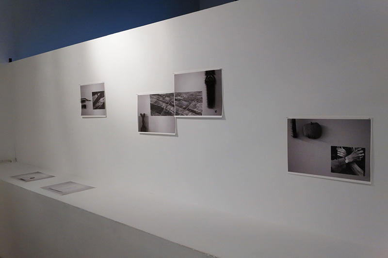 Valentina Vannelli présente Carte d’Atlantide, une photographie, (tirage jet encre sur papier japonais à partir de négatif), posée en équilibre sur deux tréteaux, qui aurait subi l’effet de l’eau. Il s’agit d’une partie du projet Mémoire d’Atlantide pour lequel l’artiste a expérimenté le support photographique comme un territoire. L’eau a transformé l’image et un nouveau paysage émerge. Dans cette œuvre, aux plages de couleurs fluides, les lignes sont des indices d’une carte. L’artiste s’est inspirée des lectures du Timée et Critias de Platon, dialogues où le philosophe introduit le mythe d’Atlantide, cette île dont le destin est de disparaître dans la mer. Photographie et cartographie, deux systèmes de figuration et de mémoire d’un territoire se rencontrent. La photographie a enregistré différents passages et montre une diversité de strates temporelles. En effet, pour l’artiste « la carte est un document qui permet de “dessiner“ les espaces politiques, économiques et sociaux qui changent le territoire. Si le support photographique est pensé comme un territoire, afin de pouvoir décoder les mutations subies par l’inondation alors, le négatif devient “carte d’un ailleurs“ [2] ». Cette installation convoque la notion de temps, la transformation des territoires et le pouvoir de la carte comme mode de représentation des paysages.