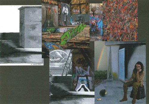 Or, dans « Ballade pour “Melencolia I” » (2011) voisinent l’arc-en-ciel en noir, gris, blanc de Dürer, seulement interrompu par le bord gauche de la gravure, et la section terminale gauche d’un arc-en-ciel tout en couleurs, qui chute abruptement telle une comète dont la tête disparaîtrait dans la terre, derrière l’épais rideau de verdure, complétant et brisant à la fois l’arc saturnien de Dürer qui brille au-dessus de la mer en annonciateur des hautes eaux [29]xxix. En écho au double arc-en-ciel sur l’île d’Yeu que lui avait signalé peu de temps auparavant notre carte postale ? En souvenir de l’arc-en-ciel qui suscita l’espérance des insurgés de Thomas Müntzer avant leur anéantissement à Mühlhausen en 1525 ? Entre eux, deux échelles : à gauche, celle de Dürer, appuyée contre la maison en état d’inachèvement stéréométrique de « Geometria s’abandonnant à la mélancolie, ou de la mélancolie s’adonnant à la géométrie » ; à droite, en plan rapproché, l’échelle brune plus large, moins lisse, au contact sans le traverser du plancher double de la halle « achevée », exténuée, au sol éventré, au-dessus duquel ne cesse de s’avancer en incarnation ludique de la Révolution Beuys même, l’homme qui se baladait en chapeau de feutre, dont nous ne vîmes que le costume, sur son estampe de 1972, « La rivoluzione siamo Noi », « La Révolution, c’est nous ». Prenant dans la ballade en découpe allégorique de Rautenstrauch la place du sombre génie ailé de Dürer au poing fermé contre sa tête en concentré de puissance, un jeune homme est assis de même, à la main cependant ferme et détendue soutenant sa tête brune, le visage plus méditatif que sombre, la sphère parfaite à ses pieds, sans polyèdre ni sablier, mais avec le pur appareil stéréoscopique dressé entre l’arc-en-ciel et l’écran plat contre la paroi de droite : l’une de ces sculptures élancées, à taille humaine en bois, en bronze, singulier zograscope d’un gardien de runes, où s’inséreraient les lunettes à prismes d’Ekkehart Rautenstrauch, trop tôt parti une nuit d’éclairs, tonnerre de janvier 2012 pour son Voyage d’hiver, à l’écoute des variations Goldberg –