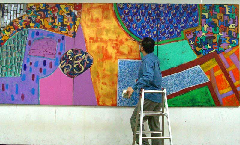 Ses gestes vont du tracé au grattage, du coup de pinceau au balayage, de la découpe au recouvrement, du ponçage eu frottage, du creusement au remplissage, en d’autres termes du dessin à la peinture, de la peinture au volume et du volume à la surface, dans un balancement qui fait de chacune de ses œuvres un élément unique mais associé au tout que l’on pourrait décrire comme un immense navire voguant sur l’océan de l’art.